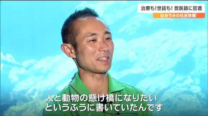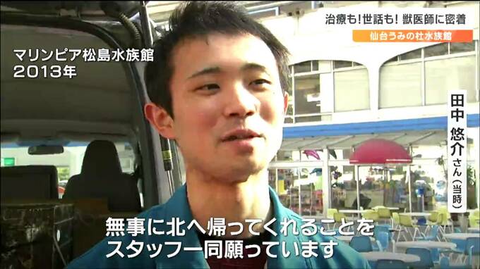 田中さんは、実家でイヌを飼っていたことや、獣医師が主人公のテレビドラマなどから興味を持ち、動物の保健看護や獣医学を学ぶ大学へ進学。在学中の実習で、ペンギンやイルカと直接触れ合える水族館に惹かれ、動物病院ではなく2010年、松島町にあったマリンピア松島水族館を職場に選びました。