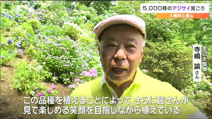 四季を通して地域から親しまれている里山に彩りを添えています。宮城県大郷町では、およそ5000株のアジサイが見ごろとなり、訪れた人の心を和ませています。