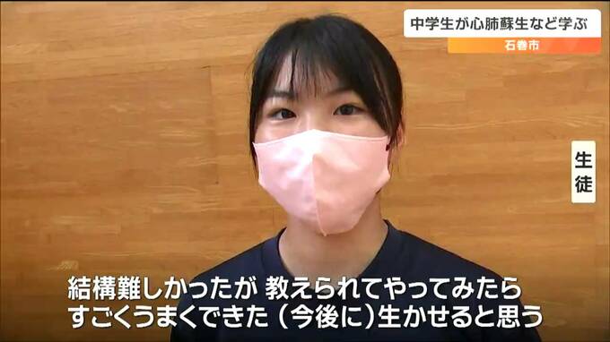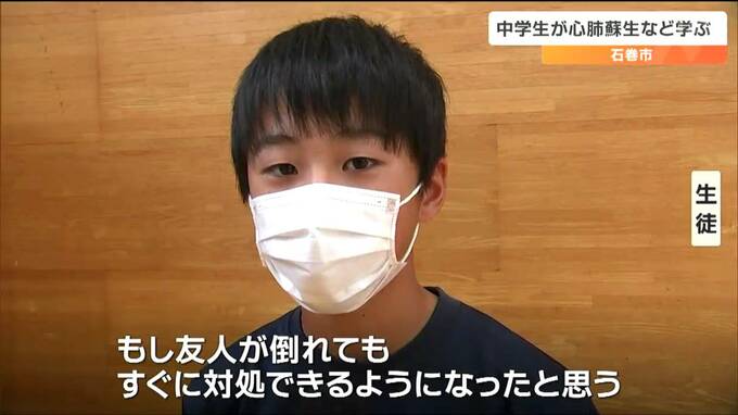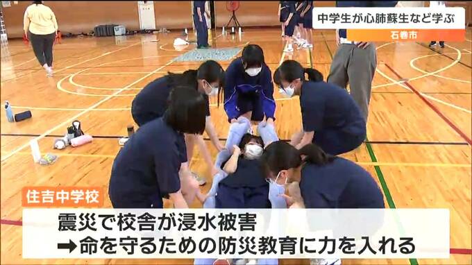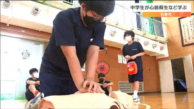 東日本大震災の後、防災学習に力を入れている宮城県石巻市の中学校で30日、救命処置の講習会が開かれました。生徒たちは、心臓マッサージの正しい方法などを学びました。