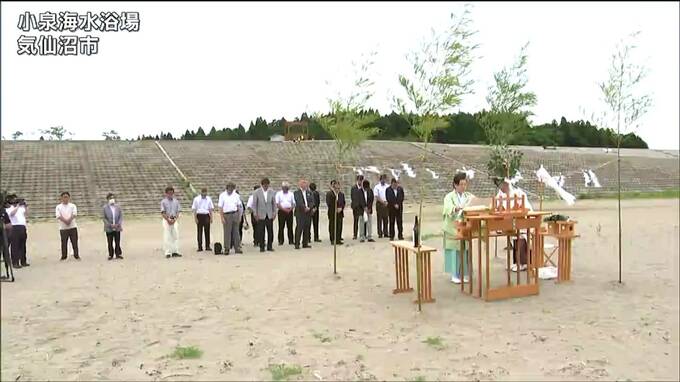 宮城県気仙沼市の小泉海水浴場で1日、海開きが行われ、シーズン中の安全を願いました。