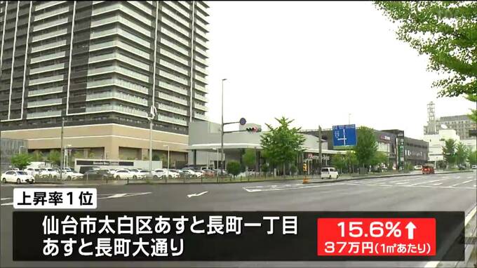 また、上昇率がもっとも高かったのは、太白区あすと長町1丁目のあすと長町大通りで、去年より15.6%上昇しました。
