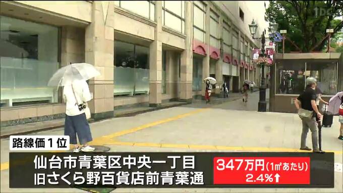 県内で最も路線価が高かったのは、仙台市青葉区中央1丁目、旧さくら野百貨店前の青葉通で、1平方メートルあたり347万円でした。