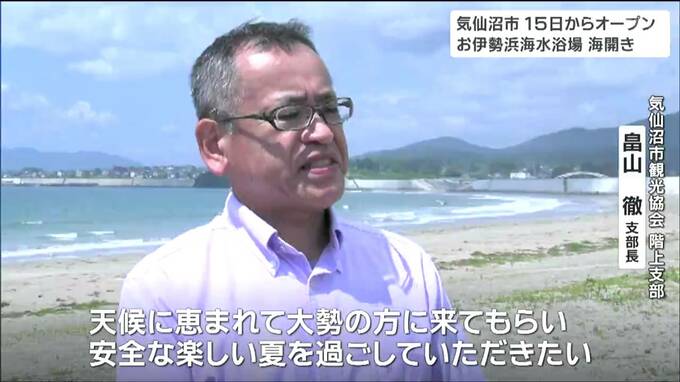 宮城県気仙沼市のお伊勢浜海水浴場で6日、シーズン中の安全を願う式典が行われました。15日からオープンします。