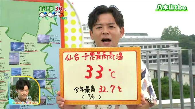 「夕方まで急な強い雨や落雷に注意、仙台は今年1番の暑さとなる予想」宮城の30秒天気 tbc気象台 10日 2023年7月10日(月) 10:23 国内 天気 7月10日月曜日、宮城の30秒天気です。tbc気象台、今野桂吾気象予報士がお伝えします。「この後晴れ間もありますが、にわか雨や雷雨のおそれも。夕方まで急な強い雨や落雷に注意してください。最高気温は広く30度以…
