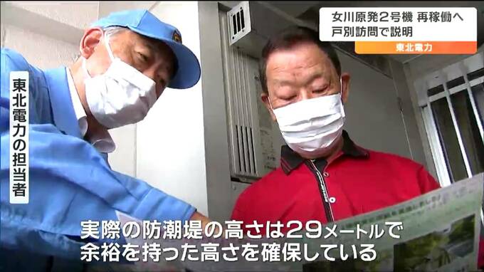 来年2月に女川原子力発電所2号機の再稼働を目指す東北電力は、安全対策工事の整備状況などを説明する戸別訪問を、女川町などで11日から始めました。