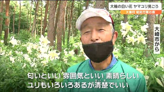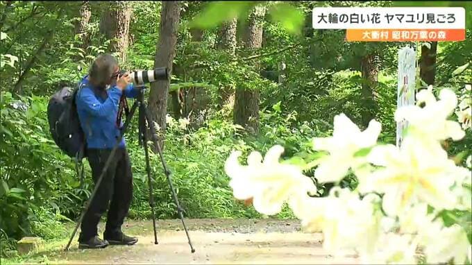 宮城県大衡村の森林公園では、大輪の白い花を咲かせるヤマユリが見ごろを迎え、訪れた人を楽しませています。