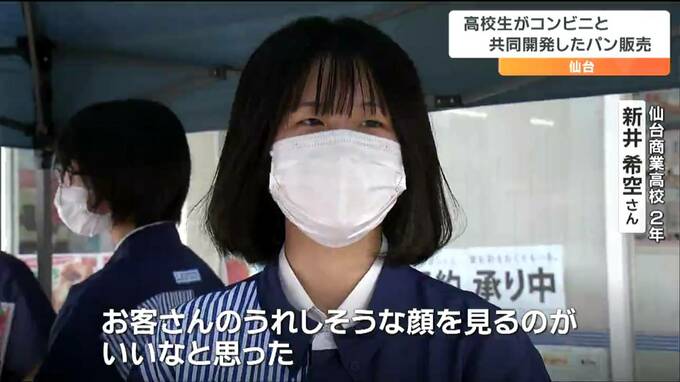 仙台商業の生徒たちが14日、大手コンビニエンスストアと共同開発したパンを仙台市内の店舗で販売しました。
