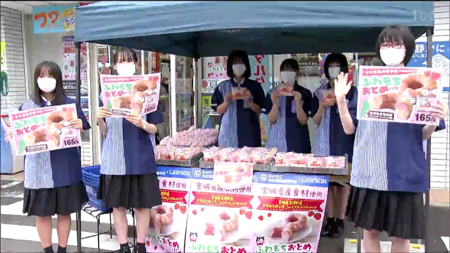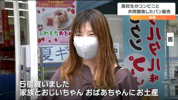 泉区のローソン仙台南光台1丁目店の店頭に立ったのは仙台商業高校の生徒6人です。販売したのは仙台市と連携協定を結んだローソンと生徒たちで共同開発した「ふわもちおとめパン」。