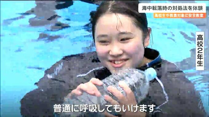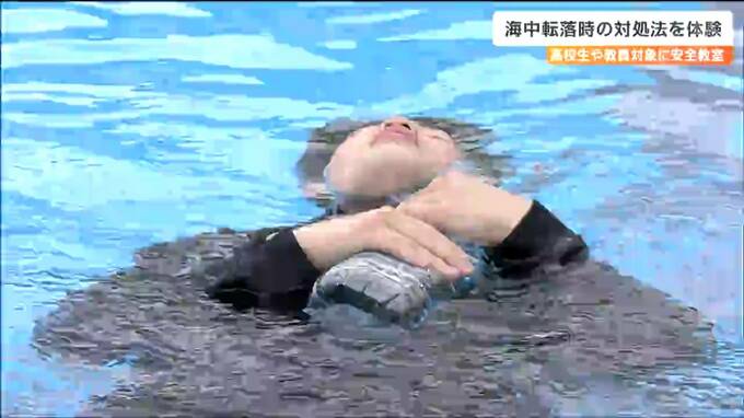 参加者も、服を着たままプールに入り、実際に背浮きを体験しました。