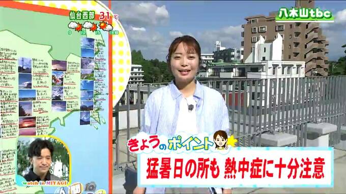 「最高気温35度以上の猛暑日になるところも出てくる見込みです。熱中症には十分注意してください」 宮城の30秒天気 tbc気象台 17日 2023年7月17日(月) 09:42 国内 天気 7月17日月曜日、宮城の30秒天気です。tbc気象台、南真央気象予報士がお伝えします。「17日は高気圧に覆われて晴れますが、日中は北部を中心ににわか雨のところとありそうです。最高気温35度以上の猛暑日になると…