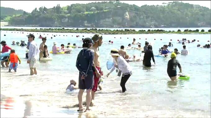 このうち七ヶ浜町の菖蒲田海水浴場でも大勢の家族連れなどが訪れています。17日は朝から青空が広がり、波も穏やかで訪れた人たちは海水浴を満喫していました。