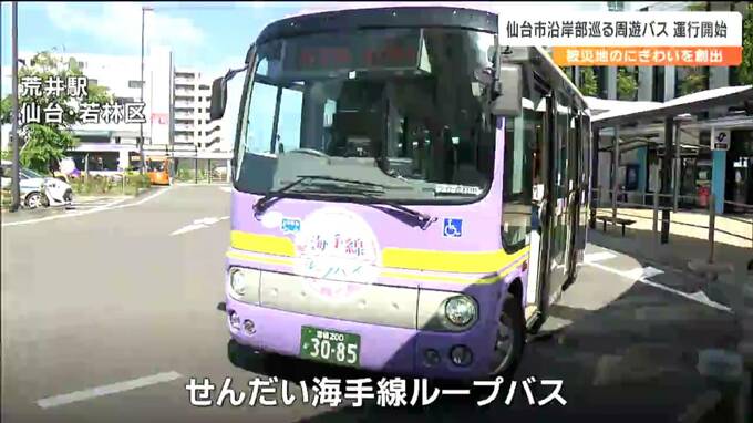 「せんだい海手線ループバス」運行開始 地下鉄荒井駅を出発し震災遺構の荒浜小や観光施設など8施設に停車 仙台 2023年7月17日(月) 15:09 国内 仙台市東部の沿岸地域などを巡る周遊バスの運行が17日から始まりました。地下鉄東西線荒井駅を起点として震災遺構・荒浜小学校や名取市閖上を回ります。17日から運行が始まった「せんだい海手線ループバス」地下鉄…