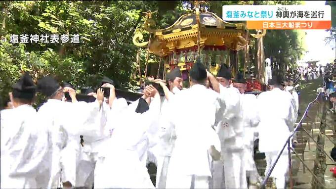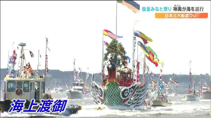 海の日の17日、日本三大船まつりのひとつ「塩釜みなと祭」が行われました。宮城県塩釜市内の神社から運ばれた神輿が、海の安全や大漁を願って市内や松島湾を巡る姿に港町は活気づきました。