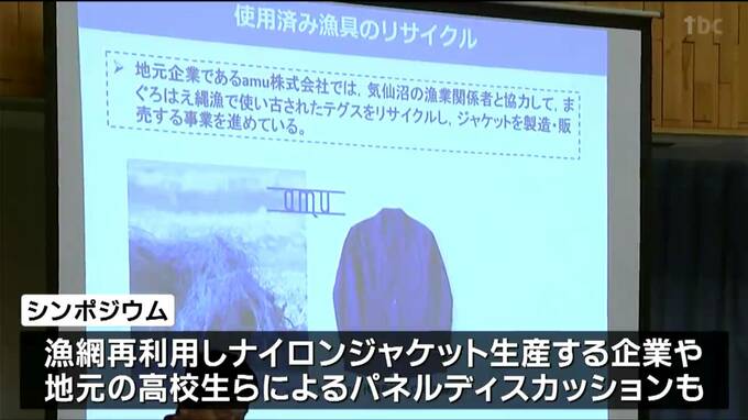また、海に捨てられてしまうこともある漁業用の網を再利用しナイロンジャケットを生産する気仙沼市の企業や地元の高校生などによるパネルディスカッションも行われました。