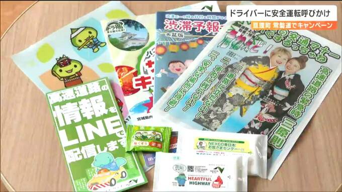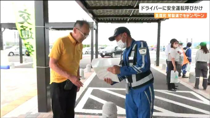 夏の行楽シーズンの交通死亡事故を防ごうと宮城県亘理町の常磐自動車道で、ドライバーに安全運転を呼び掛けるキャンペーンが行われました。