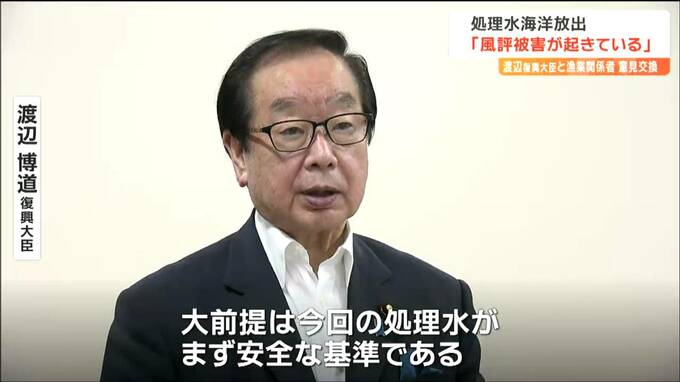 政府は、夏ごろの処理水の海洋放出を予定していて、渡辺大臣はIAEAの報告書に基づいた安全性の確保や風評対策を説明し漁業関係者らに理解を求めました。