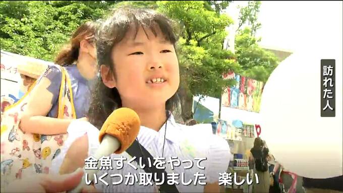 22日は梅雨も明けて青空が広がり、訪れた人たちは思い思いにまつりを楽しんでいました。また、メインステージでは人気アーティストのライブイベントも開かれています。このほか、テレビの生番組やラジオの公開収録もあります。