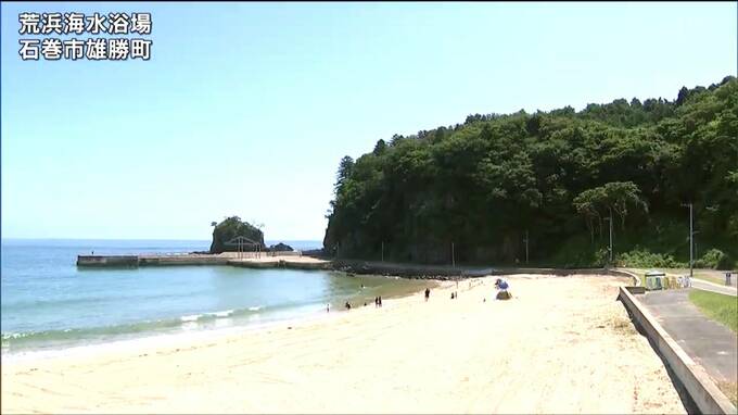 梅雨明けした県内は、沿岸部を中心に強い日差しが照りつけています。22日からオープンした石巻市雄勝町の荒浜海水浴場には家族連れなどが訪れました。