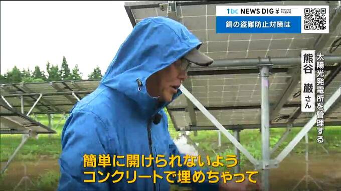銅線の盗難被害に遭った大崎市の太陽光発電所で話を聞きしました。