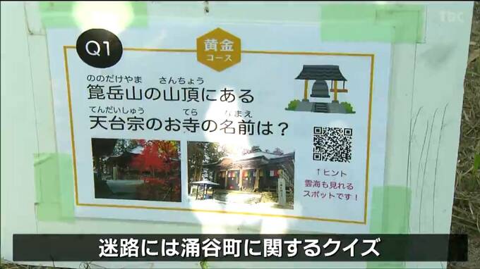 迷路には涌谷町に関するクイズが用意されていて、参加者はクイズのある場所を探しながらゴールを目指します。