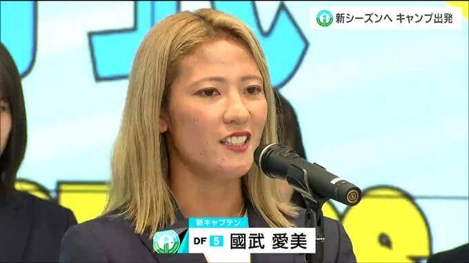 1日朝、仙台空港に到着したマイナビ仙台レディース。空港には新外国人選手らを含む選手17人が集合しました。キャンプ出発を前に行われた壮行式では、新キャプテンの國武愛美選手が今シーズンへの決意を述べました。