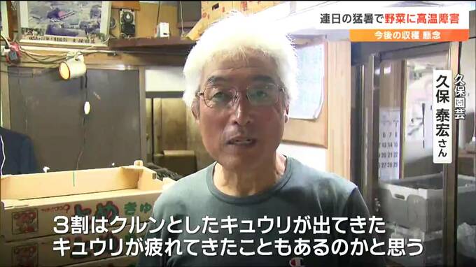 「3割はクルンとしたキュウリが出てきた。キュウリが疲れてきたこともあるのかと思う。(形が悪いと)結局Cランク、規格外品が多くなれば、2割3割の収入減になる」