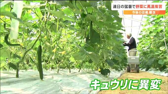 連日の猛暑が野菜の生育にも影響を及ぼしています。宮城県内ではキュウリなどの野菜に高温障害が出始めていて、農家は今後の収穫を懸念しています。