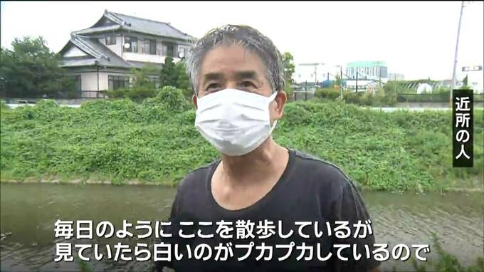 「毎日のようにここを散歩しているが、見ていたら白いのがぷかぷかしているのであれっと思って段を降りたら全部魚の死骸だった」