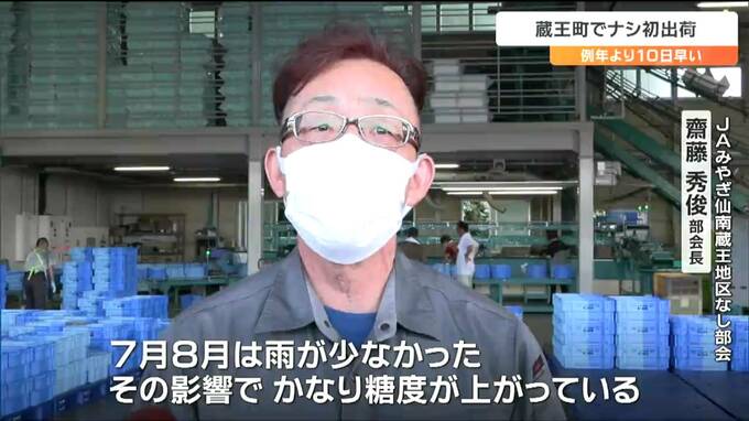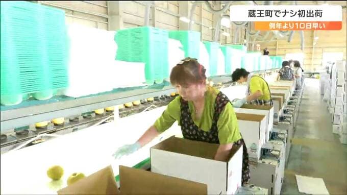 ナシの産地、宮城県蔵王町では例年より10日ほど早く今シーズンのナシの出荷が始まりました。好天が続いたため、甘いナシができたということです。