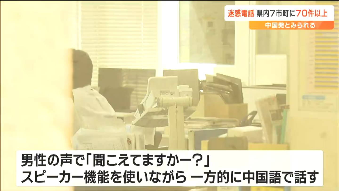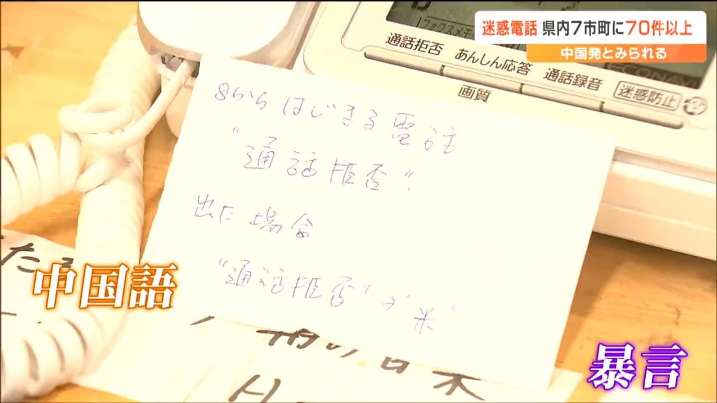 また、宮城県蔵王町には25日午後、発信元番号に中国の国番号「86」がついた電話がかかってきました。男性の声で「聞こえてますかー?」などと片言の日本語で呼びかけてきたあとスピーカー機能を使いながら一方的に中国語で話し、電話口の周囲にいたと思われる男性たちの笑う声も聞こえたということです。