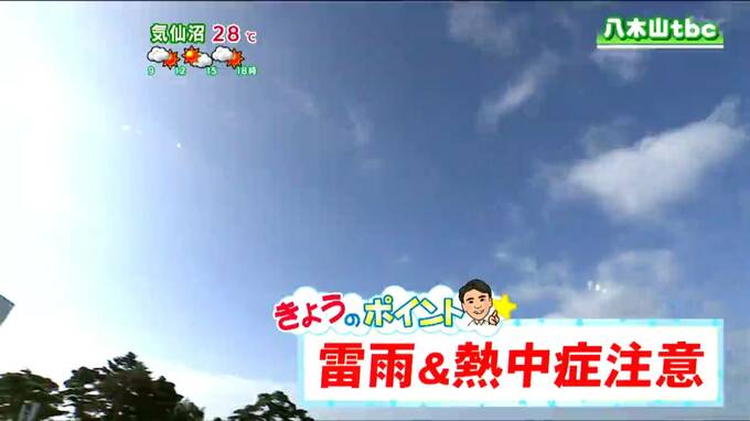 「晴れ間が出ますが午後は次第に雲が広がり西部を中心に雨」宮城の30秒天気 tbc気象台 12日 2023年9月12日(火) 10:21 国内 天気 9月12日火曜日、宮城の30秒天気です。tbc気象台、今野桂吾気象予報士がお伝えします。「きょうの県内は晴れ間が出ますが、午後は次第に雲が広がり、西部を中心に雨が降るでしょう。局地的に激しい雷雨となるおそれ…