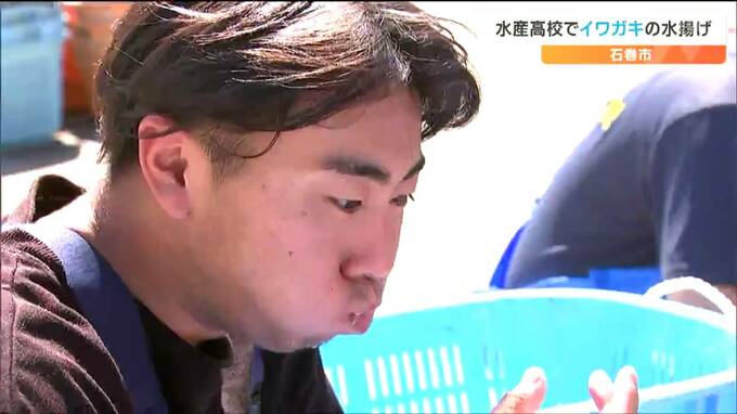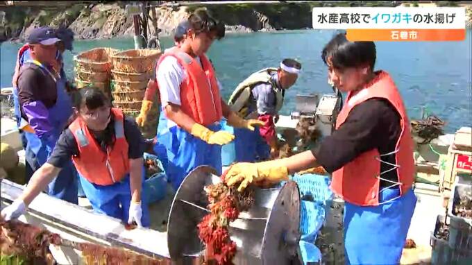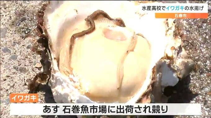 宮城県石巻市の水産高校の生徒たちが12日、実習の中で養殖をしてきたイワガキの水揚げに挑戦しました。
