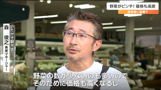 いたがき朝市店では、「できる限り価格を押さえて野菜を販売していきたい。あとは猛暑が収まるのを待つしかない」と話していました。