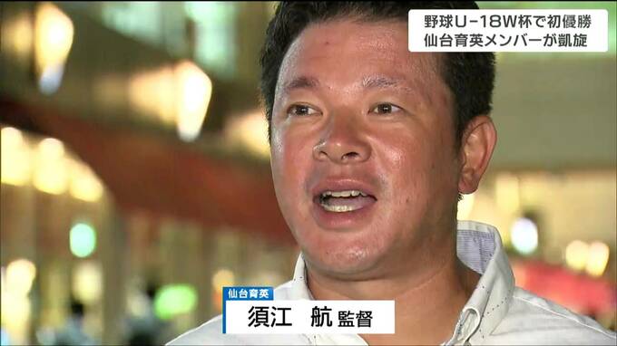 11日夜、仙台駅に到着したのは、野球18歳以下ワールドカップで初優勝を果たした仙台育英の山田選手、橋本選手、高橋選手、尾形選手の4人です。