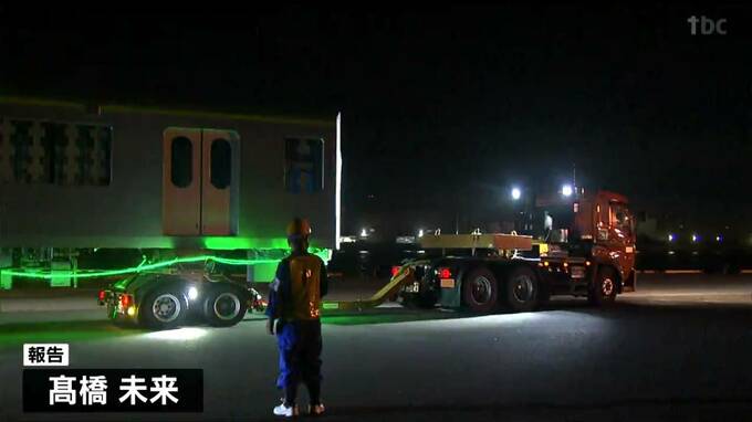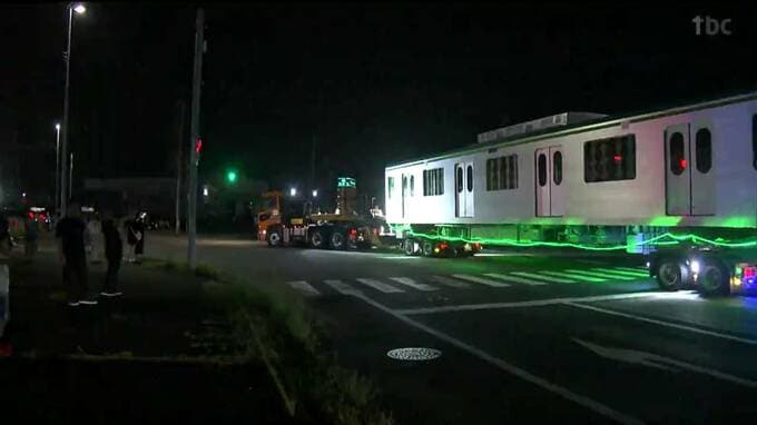 11日、搬入作業が行われたのは南北線の新型車両2両でトレーラーに載せられ、午後9時頃、宮城野区の仙台港から出発しました。