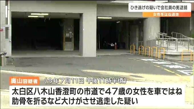 警察によりますと、奥山容疑者は、今年7月11日の午後11時半頃、仙台市太白区八木山の市道で47歳の女性を車ではね、肋骨の骨を折るなどの大けがをさせたまま逃走した疑いがもたれています。