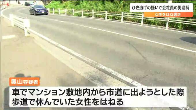 奥山容疑者は、車でマンションの敷地内から市道に出ようとした際に、歩道で休んでいた女性をはねたということです。