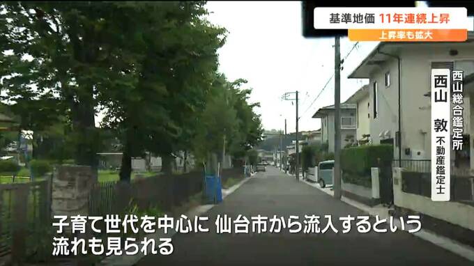 土地取引の目安となる宮城県内の基準地の価格が公表され、県全体では11年連続の上昇となりました。新型コロナに伴う行動規制が解除されて、景気が持ち直しているとして、上昇率は去年より拡大しました。