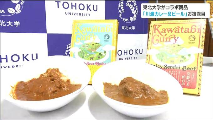 宮城県大崎市川渡地区にある東北大学附属農場の仙台牛やひとめぼれを活用したコラボ商品が開発されました。その名も「川渡カレー」と「川渡ビール」21日、報道関係者にお披露目されました。