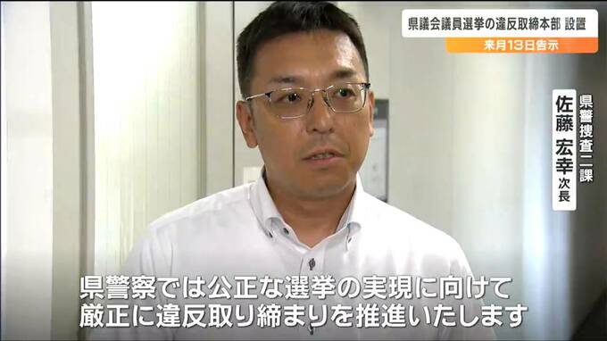 選挙違反の取締本部は県内にある25の警察署にも設置されました。県議会議員選挙は、10月13日に告示、22日に投開票が行われます。