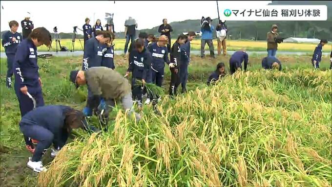 マイナビ仙台レディースは21日、チームとして取り組んでいる農業体験の一環として稲刈りにチャレンジしました。