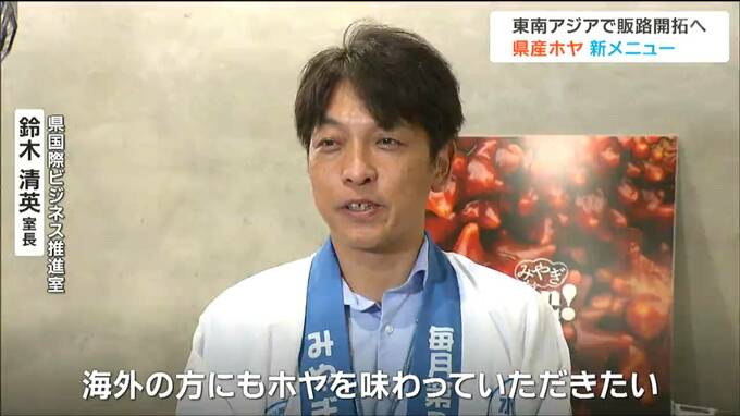 宮城県産ホヤの新しい輸出先を開拓しようという取り組みです。ベトナムやタイなど東南アジアの人たちにホヤのおいしさをPRしようと新メニューが考案され、試食会が開かれました。
