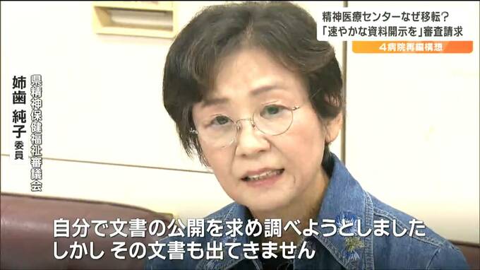 情報公開請求を行ったのは県精神保健福祉審議会の姉歯純子委員です。9月6日、県立精神医療センターと東北労災病院の併設に関して議事録などの資料を情報公開請求したところ県からは「開示・不開示の判断に時間を要する」として決定を11月21日まで延長すると回答がありました。