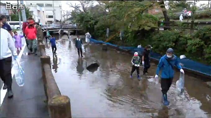 本格的な秋の観光シーズンに向け白石市では23日、白石城のお堀の清掃作業が行われました。