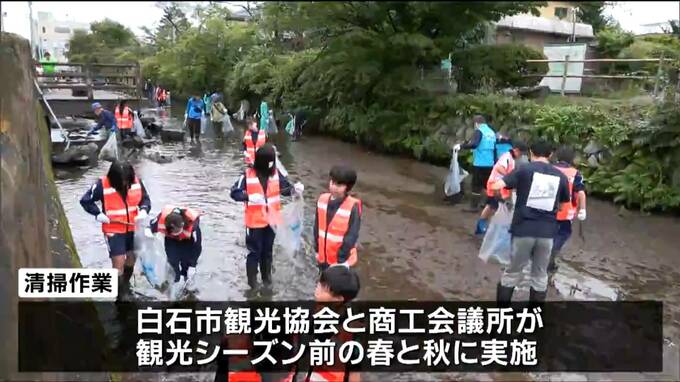 この清掃作業は、市の観光協会と商工会議所が観光シーズン前の春と秋の年2回行っているものです。