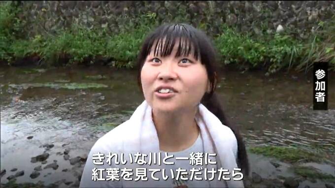 参加者「いろいろなゴミがあって、この活動をして拾えて良かったです」 参加者「綺麗な川と一緒に紅葉を見ていただけたらと思います」