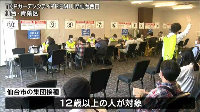 仙台市の集団接種は12歳以上の人が対象で、青葉区の会場では予約した人が接種を受けていました。23日はおよそ1350人の接種が行われ、来月1日までの予約枠もほぼ埋まっているということです。