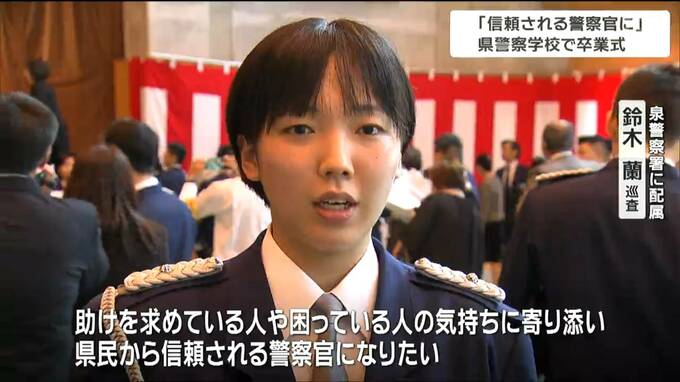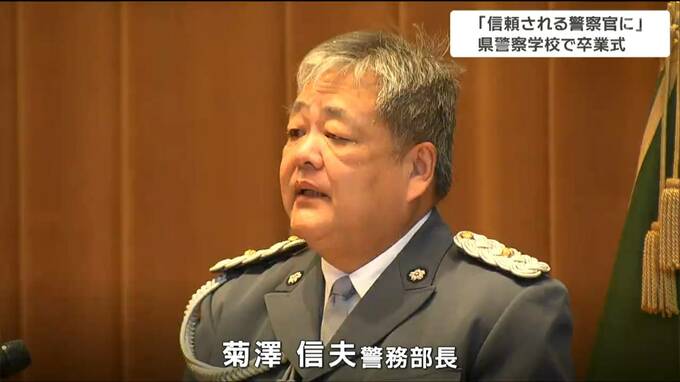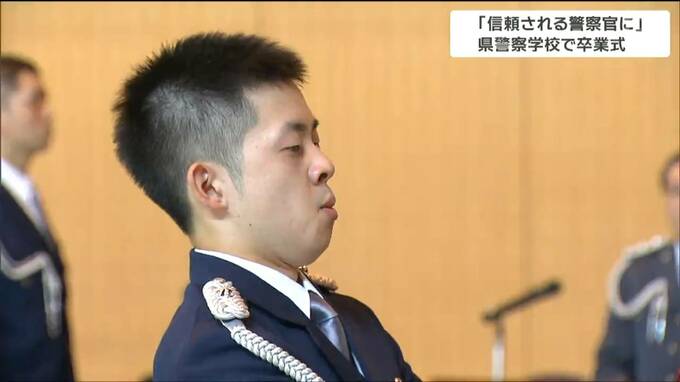 今年の卒業式は、新型コロナの制限がなく家族も参加して行われました。卒業生は、25日付けで県内15の警察署に配属され第一線で任務にあたります。