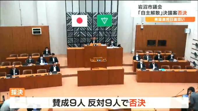 しかし、本会議では「議論が全くなされていない」、「議員不在の期間が生じる」など反対の意見が相次ぎました。地方議会の自主解散には議員の4分の3以上が出席し、うち5分の4以上の同意が必要ですが、採決の結果、決議案は賛成9人反対9人となり否決されました。