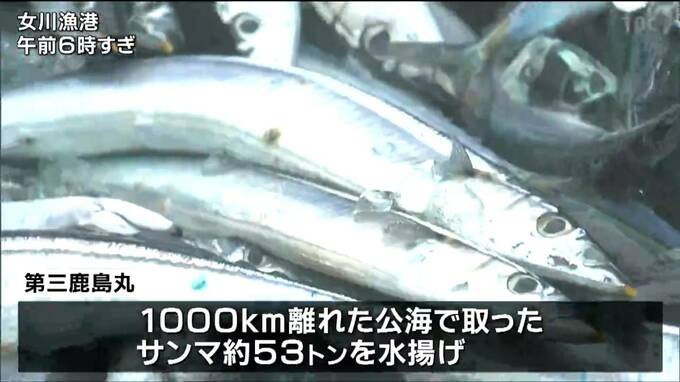 「去年よりは漁獲量多いか」女川港に石巻の大型船“第三鹿島丸”がサンマ53トン初水揚げ 宮城 2023年9月27日(水) 11:50 国内 不漁が続くサンマが27日朝、宮城県の女川港に今シーズン初めて水揚げされました。女川港では朝、石巻市の大型船「第三鹿島丸」が、1000キロ離れた公海で取ったサンマおよそ53トンを水揚げしました。不漁が続くサン…